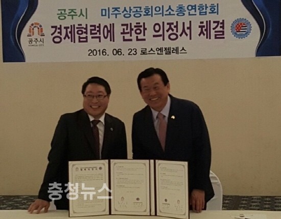 이어 오 시장 일행은 LA 호텔가든 스위트 방퀫룸에서 미주한인상공회의소총연합회 강승구 회장을 비롯한 회원 5개 기업대표와 경제협력 등 산업전반에 대한 협력 의정서를 교환하고 7개 부문의 상호 협력을 다짐했다.