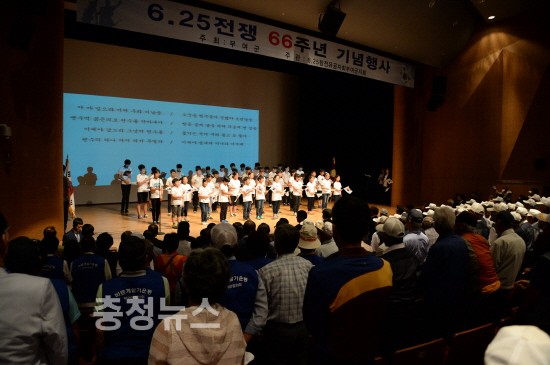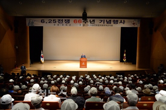 부여군(군수 이용우)은 지난 25일 국립부여박물관 사비마루에서 참전용사, 국가유공자, 군민, 학생, 군인 등 400여명이 참석해 6.25전쟁 66주년 기념식을 거행했다.