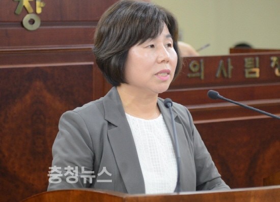 ▲ 5분 발언하고 있는 아산시의회 김영애 의원 / 충청뉴스 최형순 기자
