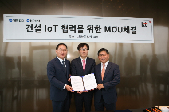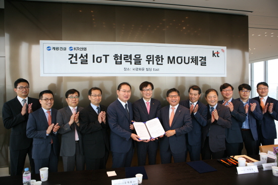 지난 30일 계룡그룹(계룡건설․KR산업)과 KT는 KT광화문빌딩 East사옥에서 ‘건설IoT 협력을 위한 업무협약(MOU)’를 체결하고, 계룡그룹이 관리하고 있는 전국의 도로, 터널, 교량과 신규 건설현장에 대하여 IoT기술 적용 방안을 협력하기로 하였다고 밝혔다.
