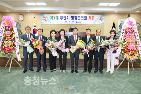 제7대 청양군의회(의장 이기성)가 5일 본회의장에서 개원식을 갖고 8명의 의원들은 “열심히 뛰는 군민의 대변자”로서의 하반기 의회 활동을 다짐했다.