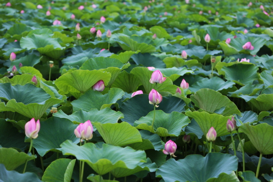 충남 당진시는 후백제와 견훤이 축조했다고 전해는 1300여 년의 역사를 간직한 충남 당진 합덕제(合德堤)의 형형색색의 연꽃들이 꽃망울을 터트리면서 지나가는 사람들의 발길을 붙잡고 있다고 밝혔다.