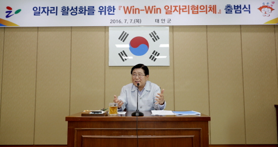 충남 태안군은 지난 7일 군청 소회의실에서 한상기 군수를 비롯, 고용노동부 보령지청, 서산고용센터, 한국서부발전(주), 지역 학교 및 기업체 관계자 등 20여 명이 참석한 가운데 ‘Win-Win 일자리 협의체 출범식’을 갖고 일자리 협의체를 본격 가동했다고 밝혔다.