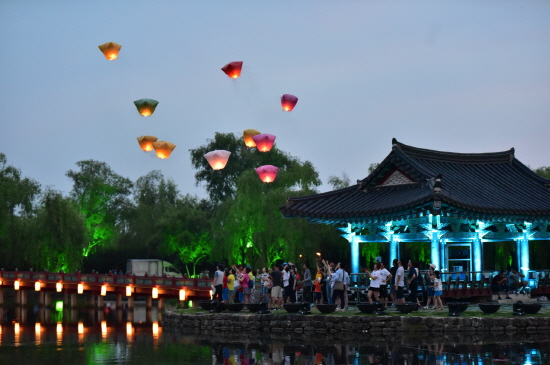 서동과 선화의 영원한 사랑을 기약하는 ‘사랑의 소원 풍등 날리기’는 매일 저녁 7시30분 궁남지의 하늘을 수놓고 있다.