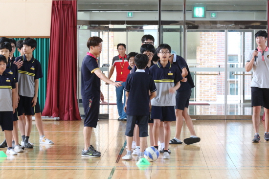 선수들과 지도자들의 시범 아래 스트레칭, 축구 기본기 교육, 미니 게임 등의 프로그램을 소화하며 축구의 즐거움을 전파하고, 체육 수업 이후에는 사인회와 간단한 질의응답을 통해 참여한 아이들과 소통의 시간을 가졌다.