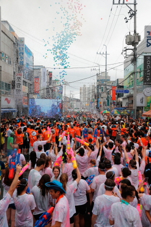 보령머드축제의 서막은 시민과 관광객이 한데 어우러져 2.2km 행렬을 잇는 ‘거리 퍼레이드’로 문을 연다.