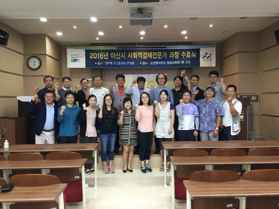 충남 아산시(시장 복기왕)는 지난 4월 26일부터 7월 13일까지 관내 기존 사회적 기업가 및 일반시민 등 45여명을 대상으로 『2016 아산시 사회적경제 전문가 과정』을 총 12강좌에 걸쳐 실시했다고 밝혔다.