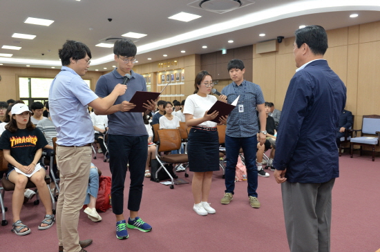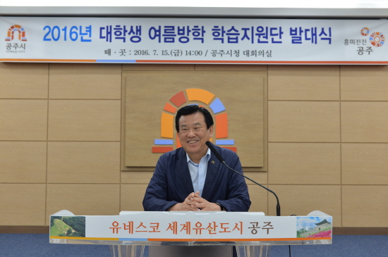 충남 공주시는 15일 오후 2시 시청 대회의실에서 오시덕 시장을 비롯한 대학생 등 120여명이 참석한 가운데 대학생 여름방학 학습지원단 발대식을 갖고 본격적인 운영에 들어간다고 밝혔다.