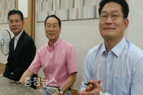 ▲ 15일 오전 유성 조찬모임, 오른쪽부터 송영길 의원과 김춘수 광주전남 호남향우회장, 박영순 대덕구 지역위원장