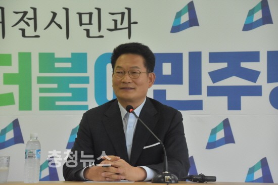 ▲ 더불어민주당 대전시당에서 열린 송영길 의원 전당대회 당 대표 출마 기자간담회