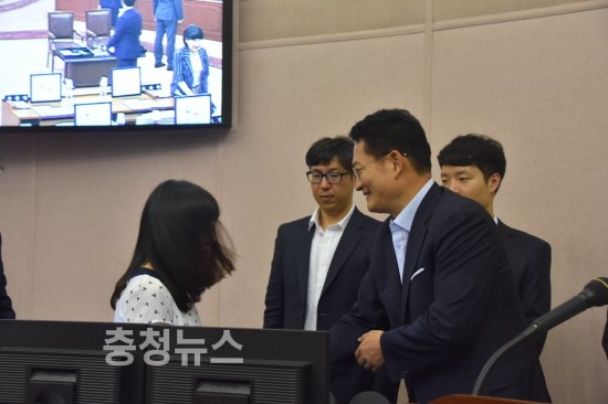 ▲ 송영길 의원이 대전시의회 직원들과 인사를 나누고 있다.