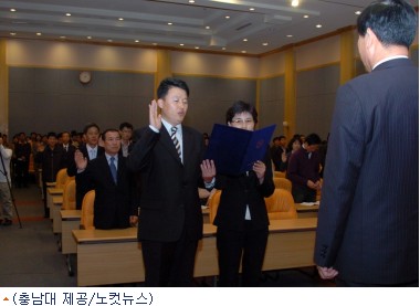 충남대학교 양현수 총장을 비롯한 교직원 300여명은 30일 오후 교내 정심화 국제문화회관에서 '교육행정서비스헌장 선포식'을 가졌다.