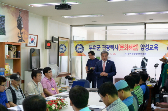 (사)부여관광발전진흥회는 부여군에서 택시를 운행하는 운수종사자를 대상으로 면접을 통해 관광택시 운행을 희망하는 23명을 선발했으며, 지난 20일 개강식을 열고 택시관광 가이드 교육을 시작했다.