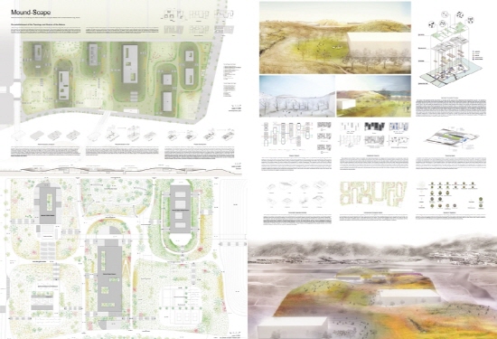 「Mound-scape」는 평면적인 주변 경관과 차별화된 지형의 자연스러운 고저차를 만들고 건축물과 자연이 하나가 되는 컨셉을 제안한 독창성이 돋보이는 작품이다. 다양한 형태의 마운드가 만드는 내부공간과 경관이 흥미로우며 건축물의 지면 노출을 최소화하면서도 필요한 기능들을 적절히 통합․수용한 것으로 평가되었다.