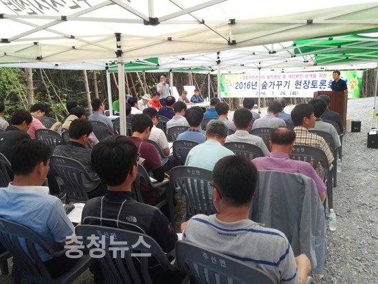 충남도는 26일 보령시 성주면 개화리 일원 도유림에서 전문가로 구성된 기술자문단과 시·군 산림부서장 등 60여명이 참석한 가운데 ‘숲 가꾸기 현장토론회’를 개최했다.