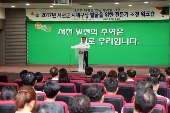 충남 서천군(군수 노박래)은 27일 농업기술센터에서 노박래 군수와 분야별 전문가, 부서장 등 관계 공무원 200여명이 참석한 가운데 새로운 내일을 여는 행복한 서천으로의 도약을 위한 2017년 시책구상 발굴 전문가 초청 워크숍을 개최했다고 밝혔다.