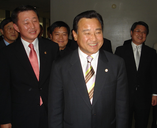 | ▲ 이완구 충남지사가 밝은 표정으로 법정을 나서고 있다. | ||