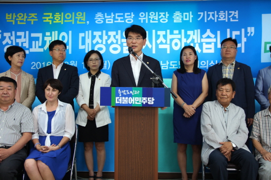 더불어민주당 박완주 의원(천안을)의원이 1일 ‘충남을 정권교체의 태풍으로, 대한민국 정치·경제의 중심으로’라는 슬로건을 내걸고 더불어민주당 충남도당 위원장 출마를 선언했다.