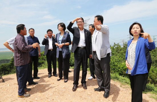 ▲ 신규 석탄활력발전(에코파워)건설 예정현장 둘러보는 환노위 소속국회의원들(사진제공- 당진시청)