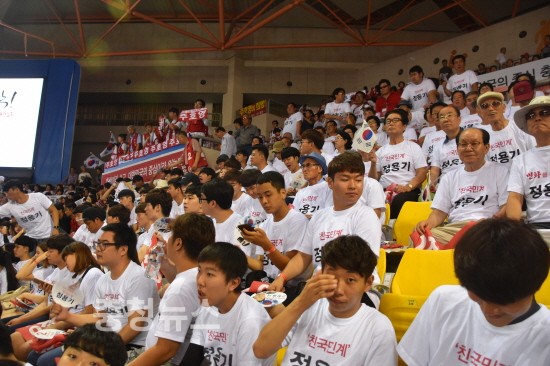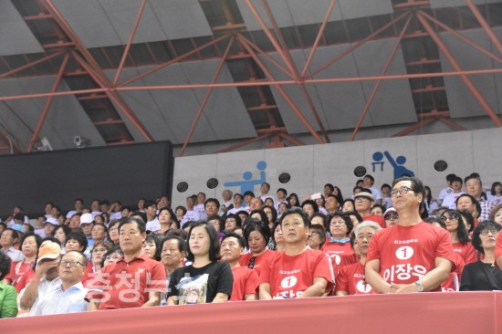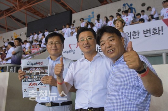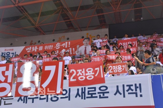 새누리당 충청권 합동토론회가 충청권인 천안에서 열린 가운데 고향을 찾은 이장우-정용기 후보 지지자들이 치열한 기싸움을 벌여 눈길을 끌었다.