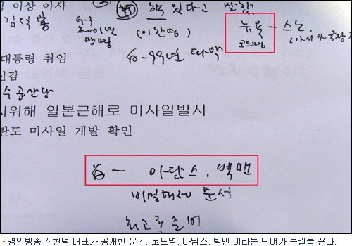 | 다른 조직원들에도 고유 코드명 부여…미국 CIA 코드명은 '뉴욕' |