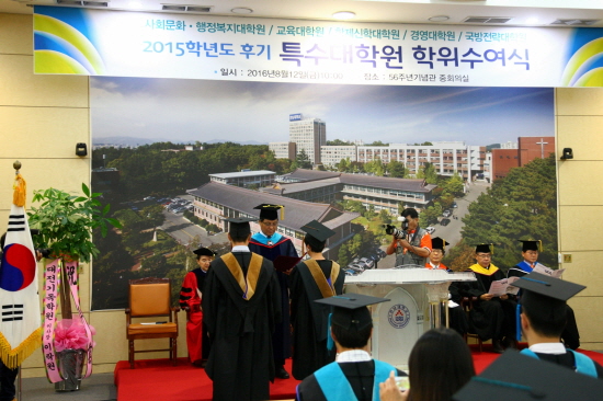 이날 학위수여식에서는 사회문화·행정복지대학원 24명, 교육대학원 35명, 학제신학대학원 1명, 경영대학원 13명, 국방전략대학원 8명 등 모두 81명이 석사학위를 받았다.