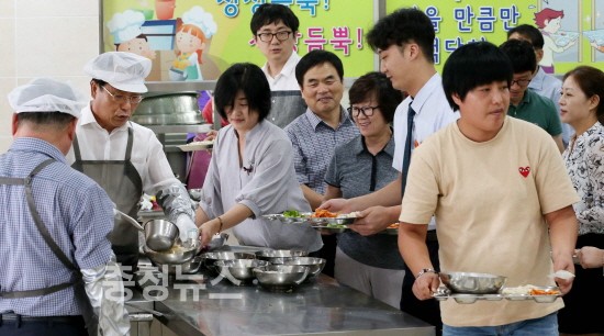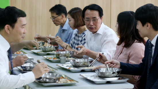 16일, 말복 맞아 구청 구내식당에서 직원들 국 떠 주며 교감