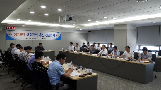 충남도가 16일 도청 회의실에서 윤종인 도 행정부지사, 도와 시·군 규제개혁 담당 공무원 등 30여명이 참석한 가운데, 규제개혁 추진 점검회의를 개최했다.
