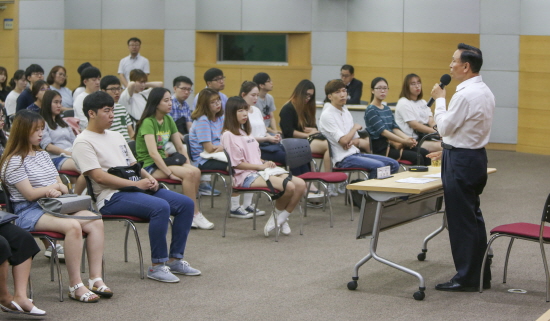 지난 7월 11일부터 실시한 하계 대학생 아르바이트를 마무리하면서 마련한 이번 간담회에서 구본영 시장과 100명의 참여 학생들은 6주간의 소중했던 아르바이트 경험을 함께 나누는 시간을 가졌다.