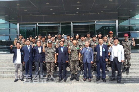 ▲ 한남대 이덕훈 총장이 18일 육군학생군사학교를 방문, 하계 입영중인 한남대 ROTC 후보생을 격려했다./사진제공:한남대
