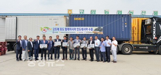 충남 부여군(군수 이용우)은 지난 19일 규암농협 산지유통센터에서 2016년산 굿뜨래 비가림 포도를 공선하여 말레이시아와 인도네시아에 초두물량 6.5톤(2천만원) 수출을 시작으로 동남아시아 시장 공략에 나선다고 밝혔다.
