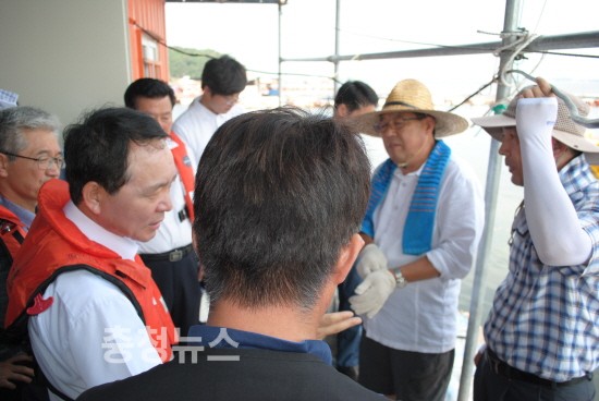 19일 가두리 양식장 바다 선상에서는 성일종 국회의원이 피해 현장을 전격 방문 해양수산부, 맹부영 충남도 해양수산국장, 윤영득 서산시의회 부의장, 서산시 신권범 해양수산과장, 수협중앙회, 심성민 LG화재특종 손해사, 피해 어민들이 참석한 가운데 긴급 대책회의가 열렸다.