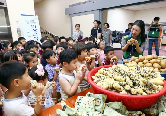 100여명 참여 감자와 옥수수, 건빵 등을 배급