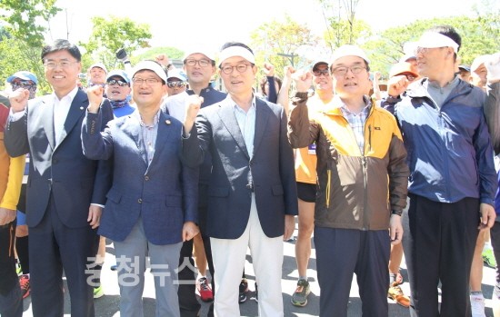 10㎞ 남자부에서는 김상덕(35)씨가 49분 26초의 기록으로 결승선을 제일 먼저 통과했다. 여자부에서는 임은주(45)씨가 1시간 2분 21초의 기록으로 1등의 영광을 안았다.