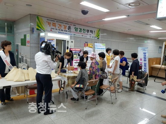 충남대학교병원(원장 김봉옥) 대전지역암센터에서는 암을 조기에 발견하여 치료하도록 함으로써 국민건강 수준을 향상시키고, 암 검진의 중요성에 대한 인식을 높여 국가 암 검진을 활성화하기 위하여 ‘국가 암 검진 캠페인’을 대전 유성온천역 건강다솜방에서 실시한다고 밝혔다.