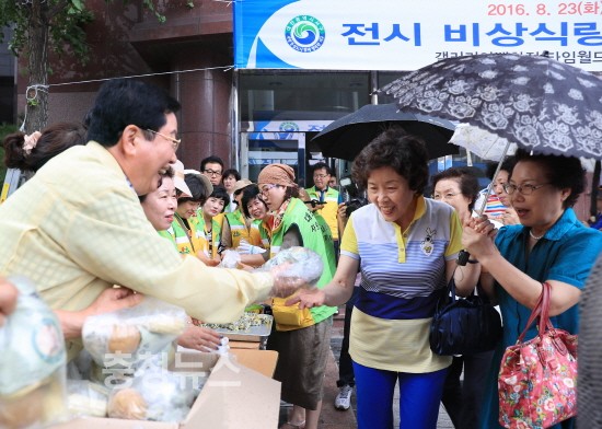 대전 서구(구청장 장종태)는 을지연습 둘째 날인 23일 둔산동 갤러리아 타임월드 로데오 광장에서 장종태 청장을 비롯한 직원, 주민 등 200여 명이 참석한 가운데 비상급식 체험행사를 했다고 밝혔다.