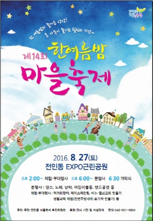 대전 유성구(구청장 허태정)는 오는 27일 전민동 엑스포근린공원에서 ‘제14회 한여름밤 마을축제’가 개최된다고 밝혔다.