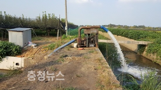 또한 급수에 어려움이 있는 성환읍 수향리 40ha 급수구역은 배수로에 간이양수기를 설치하여 일일 4,500톤의 퇴수를 공급하고, 인근 여유수로에서 일일 3,000톤의 물을 전환시켜 용수 부족을 해결하고 있다.