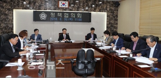 홍성군의회(의장 김덕배)는 30일 소회의실에서 정책협의회를 개최하고 군의회 법률자문 법무법인의 홍주미트 주식매각 관련 법률자문 검토결과를 집행부에 통보하고 홍주미트 주식매각의 행정절차 규정 위반을 강하게 질타했다고 밝혔다..
