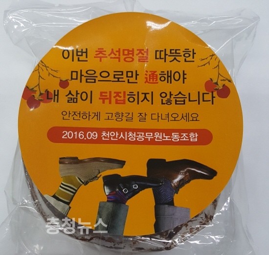 공무원노조에서 아침출근길 시청현관 및 봉서홀 입구에서 직원들을 대상으로 한 캠페인에서, ‘이번 추석명절 따뜻한 마음으로만 통해야 내 삶이 뒤집히지 않습니다’라는 문구가 새긴, 우리지역에서 제작한 호두초코파이 1,700개를 배부 하였다.