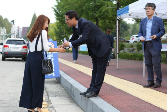 이덕훈 총장, 등교하는 학생에게 펜과 생수 나눠주며 격려