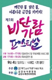 비단가람 페스티발은 총 6개 정보전시(아름다운 금강사진전, 생태 교란종 정보전시 등) 및 무료체험부스 운영(나뭇잎 손수건 만들기, 친환경 수세미 만들기, EM흙공 만들기) 및 축하무대로 지역가수 초청무대, 풍물놀이 ,난타공연, 섹소폰 앙상블, 청소년 댄스팀(D&G), 조선세법 검도 시연 등 다채로운 행사로 대전시민의 많은 관심과 흥미를 이끌어 낼 예정이다.