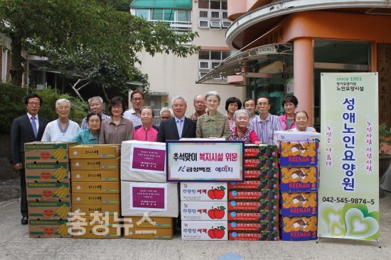 (주)금성백조주택(회장 정성욱)은 15일 추석 명절을 앞 두고 따뜻한 이웃사랑을 실천하고자 대전지역 내 복지시설(평화의마을, 성애노인요양원, 성심보육원) 3곳을 방문하여 상품권, 과일, 의류 등 정성이 담긴 선물을 전달하고 따뜻한 마음을 나누는 시간을 가졌다고 밝혔다.