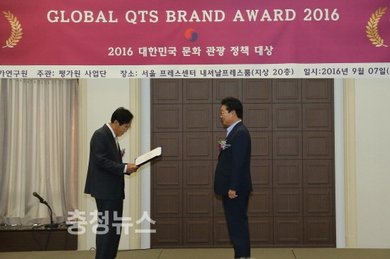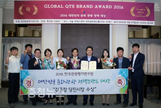 충남 당진시가 7일 서울 프레스센터에서 열린 2016 대한민국 관광정책브랜드대상 시상식에서 대상을 수상했다고 밝혔다.