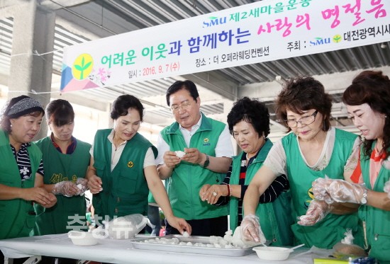 대전 서구(구청장 장종태)는 7일 탄방동 오페라웨딩홀에서 ‘서구 새마을부녀회’(회장 박순자) 주관으로 어려운 이웃과 함께하는 사랑의 명절음식 나누기 행사를 개최했다고 밝혔다.