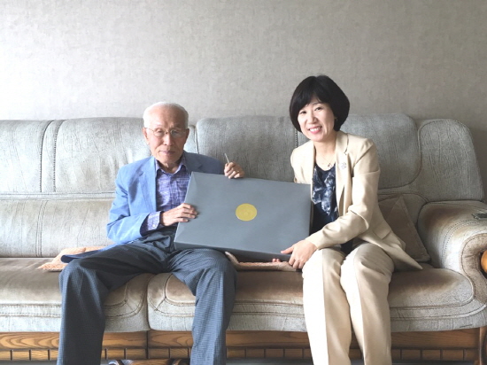 강윤진 청장은 대통령과 국가보훈처장 명의 위문품을 전달하면서, 감사와 존경의 마음을 전하고 지사의 건강을 기원했다.