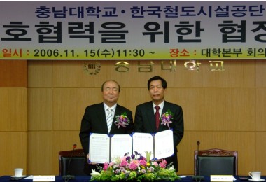 충남대학교과 한국철도시설공단은 15일 철도발전을 도모할 전문 기술인력 양성을 위한 ‘산학교류협정’을