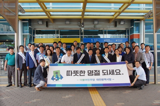 이날 행사에는 박병석 국회의원(대전 서갑), 조승래 국회의원(대전 유성갑), 강래구 동구지역위원장, 송행수 중구지역위원장, 김명경 대덕구지역위원장, 조원휘 시의회 부의장, 최치상 서구의장, 민태권 유성구의장, 박종래 대덕구의장을 비롯해 시구의원, 당직자 등 50여 명이 참석해 귀향객 등을 대상으로 명절인사를 진행했다.