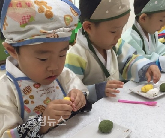 아이들은 전통한복을 입고 삼색 반죽으로 직접 빗은 송편을 먹어보고, 우리나라 전통놀이인 투호, 사방치기, 제기차기, 공기놀이, 윷놀이, 줄다리기, 강강술래 등을 경험해 보았다.