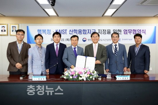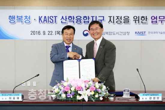 행복청(청장 이충재)과 한국과학기술원(총장 강성모)은 행복도시 내 창업생태계 조성을 위해 ‘산학융합지구사업’에 공동 참여하기로 합의하고, 양해각서(MOU)를 체결했다고 22일 밝혔다.